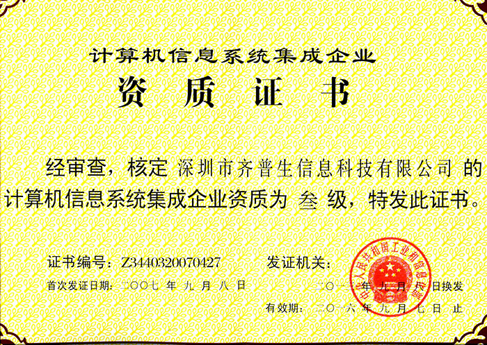 计算机信息系统集成企业资质证书(三级)